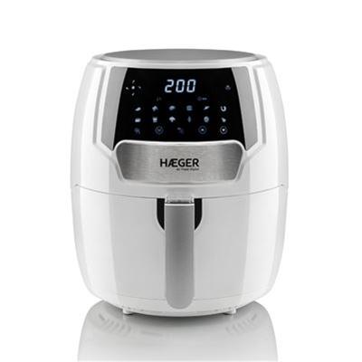 La freidora sin aceite HAEGER AIR FEAST tiene una capacidad para alimentos de 3,7 litros con poco o ningú,n aceite para cocinar de forma má,s saludable. Tiene un temporizador de 30 minutos con apagado automá,tico, una temperatura ajustable hasta 200°,C y un sistema de circulació,n rá,pida de aire. ,