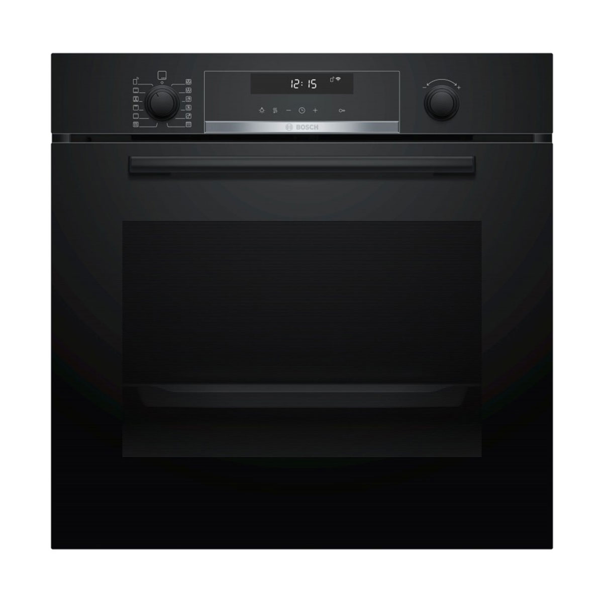 Vidro preto, visor LCD (branco), Relógio eletrónico, Cl. Energética A, Limpeza pirolítica com 3 níveis, 9 modos
