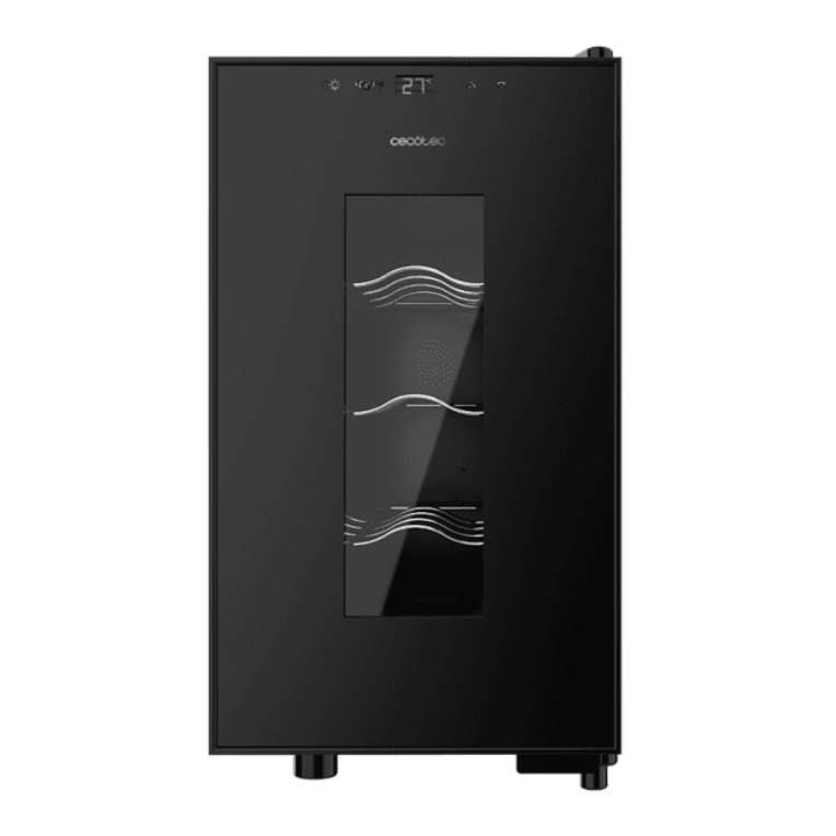 Bodega puesta a temperatura de 8 botellas de capacidad con sistema termoeléctrico de enfriamiento, que garantiza un alto rendimiento. Temperatura regulable y luz LED interior.